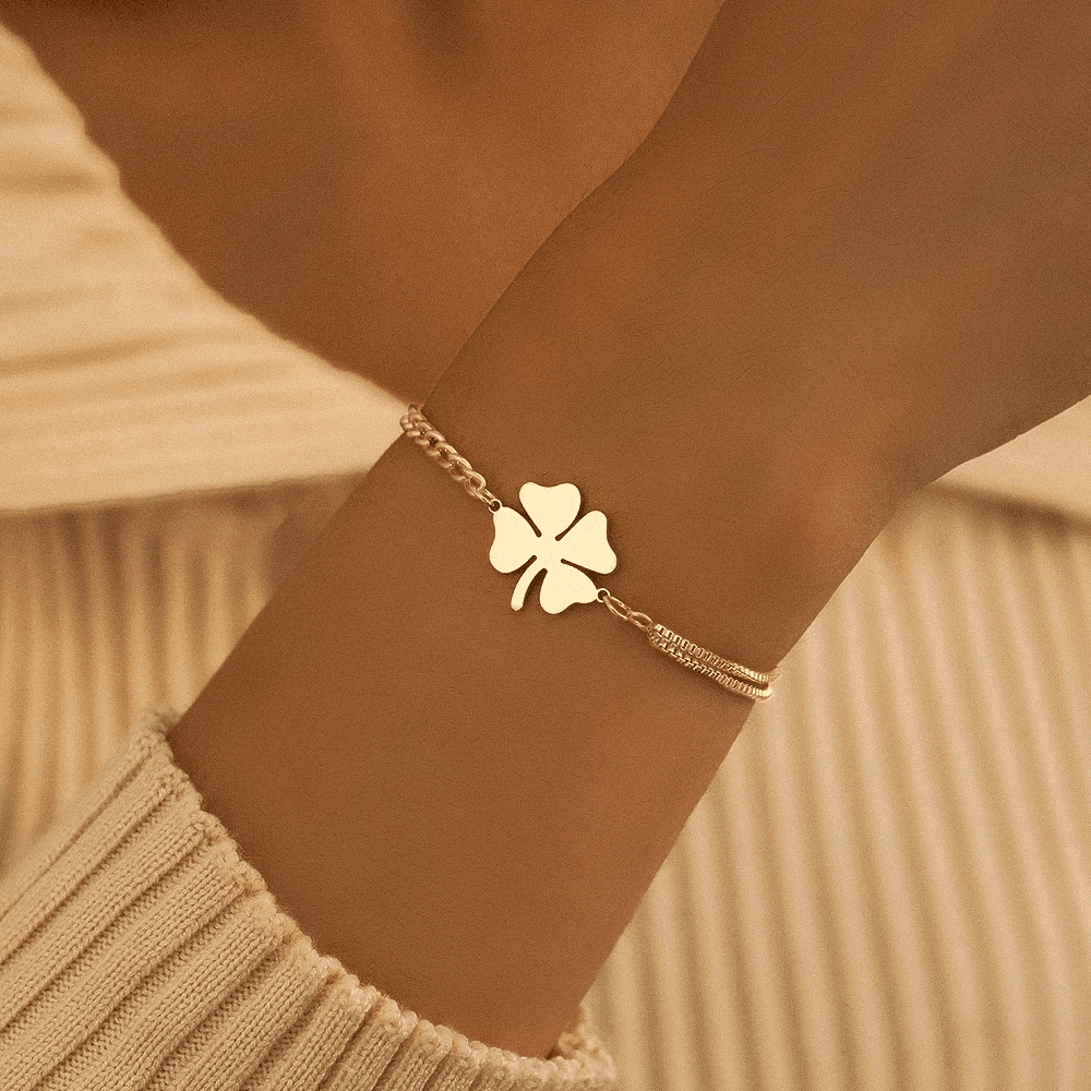 Brassard avec Grand Trèfle à Quatre Feuilles | Or 14k Plaqué