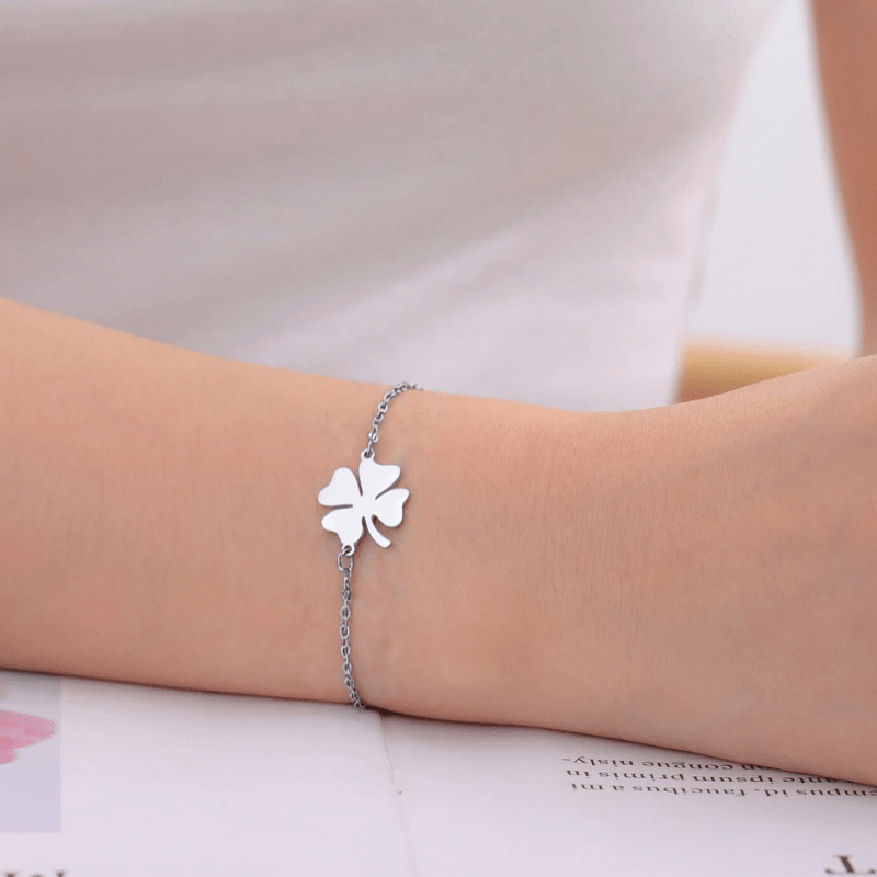 Emportez toujours la chance avec vous grâce à ce bracelet trèfle à quatre feuilles élégant, fini en or plaqué 14 carats. Le grand trèfle à quatre feuilles dégage simplicité, élégance et signification – un symbole de prospérité, d'espoir et d'amour. Avec son apparence raffinée, ce bijou est parfait pour être porté au quotidien ou offert à quelqu'un à qui vous souhaitez du bonheur.